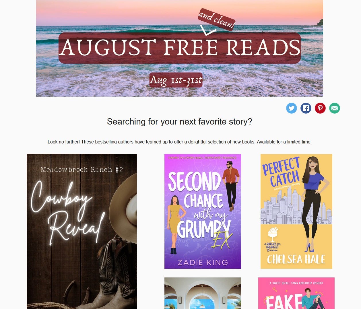 I hope you love it. Please let me know, and if you do, I’d love it if you drop a review at Goodreads, Amazon, or your favorite bookseller to help others find it. (BTW - one early reader let me know about a printing issue that has since been resolved, but if you did get a copy with any incorrectly printed pages, be sure to let the good folks at Harlequin know and they’ll make it right.) Would you like to chat with me? Are you on Facebook?I'm going to be doing an author takeover day Tues Sept 2nd for the Hold the Spice. This Group Is Nice! Facebook sweet romance group It's my first Facebook takeover, so come join us and talk favorite book recommendations, cowboys, and more. It's all day, so drop in often! Meanwhile, can I interest you in some FREE sweet romance reads?No-Spice August Reads has over 50 authors offering free reading from excerpts (like mine for Her Colorado Cowboy) to full novels, just for signing up to the author’s newsletter. Click on the “August Reads” link above to go to the full promo. All the books were required to have no spice, but I can't personally vouch for these so double-check the descriptions to be sure.