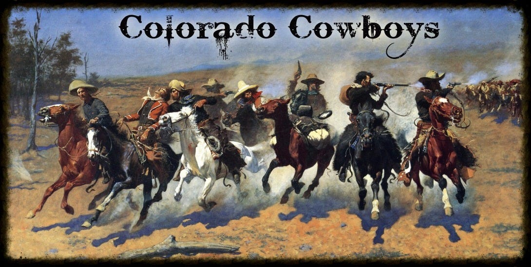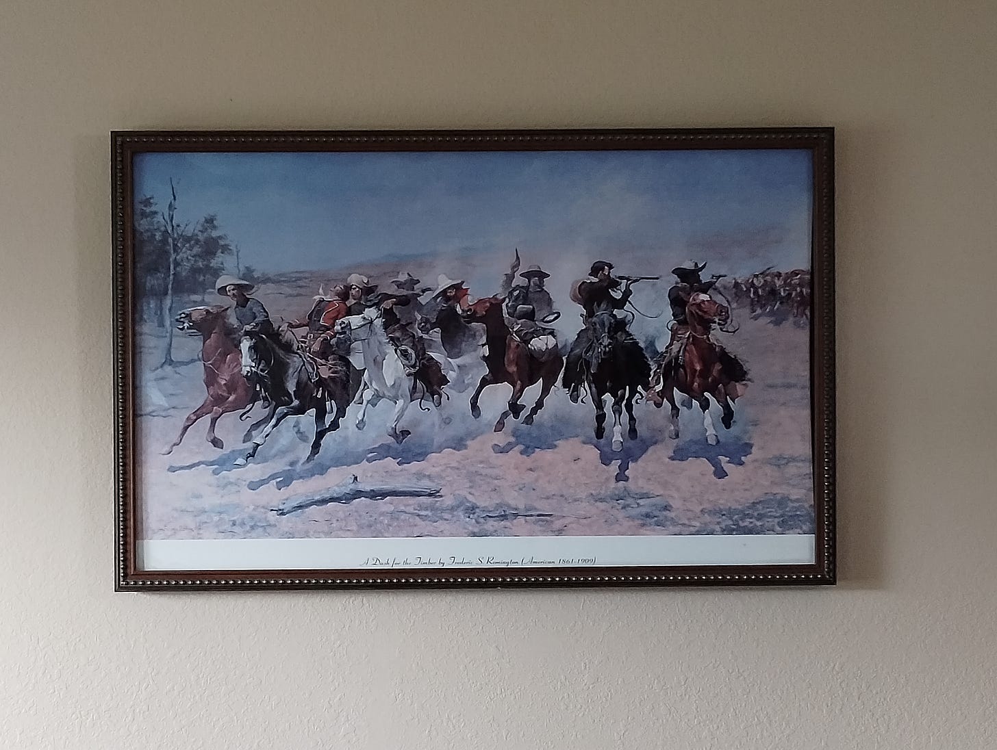I don’t think this famous Remington painting is associated with Colorado (that I’m aware of), so I’m not sure why this site attached it to Colorado cowboys, but we do happen to have a framed poster of A Dash for the Timber in our home!